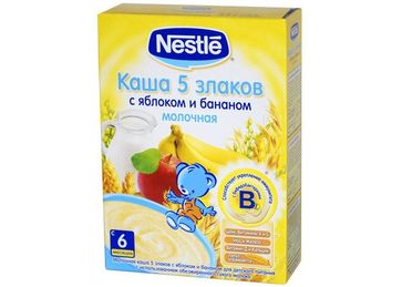 - Каша Нестле (Nestle) 5 злаков с яблоком и бананом 250г с 6мес. по выгодной цене 110 р. руб.;