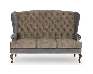 Диван прямой с ушами дизайн 5 серый-микровельвет