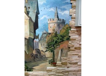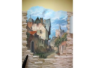 Художественная роспись стены в офисе партнера, служащая для личного ознакомления клиента с работой художника.