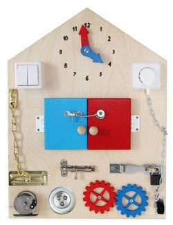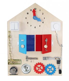Развивающая доска обеспечивает всестороннее развитие ребенка и помогает родителям уберечь его от травмоопасных ситуаций на этапе освоения окружающего мира. Способствует интеллектуальному и физическому развитию ребенка. Полезные игровые элементы: часы, выключатель, розетка с вилкой, дверцы, различные замочки, механизмы вращения помогают развивать двигательную реакцию рук, изучить функциональность каждой мелкой детали и выстроить алгоритм действий для достижения цели: самостоятельно применять полученные навыки в реальной жизни. None