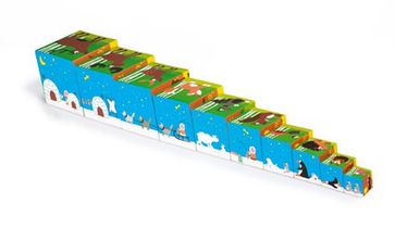 Все детишки любят кубики. Большие, маленькие, разноцветные — в них так весело играть. Представляем вам кубики нового поколения! Более 30 животных в одной коробке. В чем особенность игрушки? Кубик+Пазл. Чтобы построить башню, нужно правильно собрать картинку из десяти кубиков разных размеров. Четыре стороны кубика собираются вертикально, а одна сторона — горизонтально. Красочные иллюстрации. Красочные цвета и веселые картинки обязательно приглянутся всем детишкам. Компактная упаковка. Кубики вкладываются друг в друга и помещаются в компактную коробку с веревкой-держалкой. Они не будут разбрасываться и займут лишь маленький уголочек среди других игрушек. Суперпрочный ламинированный картон. Такой кубик не под силу помять даже самому сильному карапузу, ведь он сделан из супер-прочного материала! Нам любые дороги дороги! Поиграл, аккуратно сложил кубики в коробку, взял за веревку, и с таким чемоданчиком можно путешествовать куда угодно. Любимые кубики не дадут заскучать маленькому непоседе даже во время самых долгих дорог! Размер собранной башни: 15×85,5 см. None