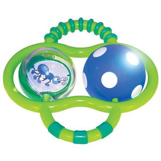 Яркая погремушка с удобными для захвата пластиковыми ручками с прорезиненной текстурой может стать одной из первых и любимых игрушек вашего ребенка. В прозрачном крутящемся шарике малыш может рассмотреть очаровательного насекомого. Другой шарик при раскрутке начинает слегка светиться. Особенности игрушки Красочная и веселая игрушка со временем не потеряет внешний вид Приятные и в то же время достаточно яркие цвета развивают зрительное восприятие ребенка Разные фактуры материалов, использованные при изготовлении игрушки, и рельефные поверхности положительно влияют на развитие мелкой моторики малыша и тактильного восприятия Разработано в США. Изготовлено из высококачественных материалов. None
