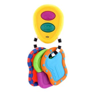 Каждому малышу хочется быть ближе к миру взролых вещей. Брелок с ключами выглядит, как автомобильный брелок с черно-белым колечком, на котором висят три разноцветных ключика. Ребенок будет в восторге от забавных звуков, которые издает игрушка, если нажать на кнопочки на брелоке. А ключики с прорезиненными краями можно перебирать пальчиками, трясти или грызть, когда режутся зубки. Особенности игрушки Красочная и веселая игрушка со временем не потеряет внешний вид Приятные и в то же время достаточно яркие цвета развивают зрительное восприятие ребенка Разные фактуры материалов, использованные при изготовлении игрушки, положительно влияют на развитие мелкой моторики малыша и тактильного восприятия Разработано в США. Изготовлено из высококачественных материалов. None