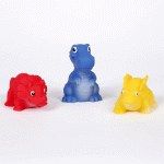 Набор из трёх разноцветных динозавриков. По ним хорошо изучать с ребёнком тактильные ощущения и цветовосприятие – все динозаврики разные наощупь. Можно попросить ребёнка найти красного или жёлтого динозаврика. None