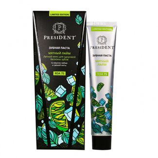 Зубная паста от President Limited Edition "Мятный лайм" - профилактическая зубная паста для ежедневного использования. Активные компоненты в составе укрепляют зубную эмаль, возвращают естественную белизну зубов и свежесть дыхания.
