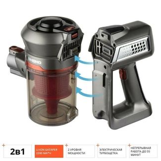 Вертикальный пылесос RV-UR359 – современный прибор для быстрой уборки в доме. Благодаря особой конструкции «2 в 1» из вертикального пылесос легко превращается в ручной: достаточно установить насадку непосредственно к корпусу, и пылесосить домашнюю мебель и текстиль, а также салон автомобиля будет также просто и легко, как пол и ковровые покрытия. Цвет серый / красный /черный. Тип пылесборника циклон. Тип уборки сухая. Мощность 100 Вт. Мощность всасывания >30 Вт. Емкость аккумулятора 2200 mAh. Время работы 55 мин. Объем пылесборника 0,8 л. Режимы работы 2. Насадка электротурбощетка. Габаритные размеры 1080х230х210 мм. None Возможен самовывоз.