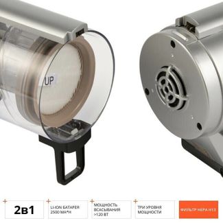 Беспроводной вертикальный пылесос RV-UR379 – «2 в 1», с его помощью вы легко наведете порядок в доме и в салоне вашего автомобиля. Цвет серый. Тип управления электронный. Тип пылесборника контейнер-циклон. Тип уборки сухая. Мощность 350 Вт. Мощность всасывания >120 Вт. Емкость аккумулятора 2500 mAh. Время работы до 65 мин. Объем пылесборника 0,5 л. Режимы работы 3. Насадка электротурбощетка. Габаритные размеры 172х250х172 мм. None Возможен самовывоз.