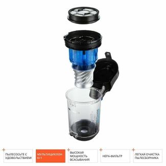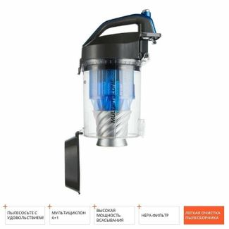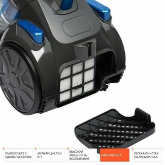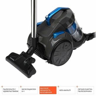 Компактный и мощный пылесос с циклонической системой фильтрации. Цвет серый / синий. Тип управления электронный. Тип пылесборника мультициклон. Тип уборки сухая. Мощность 2000 Вт. Мощность всасывания 370 Вт. Объем пылесборника 3 л. Уровень шума <80 дБ. Габаритные размеры 430х350х425 мм. None Возможен самовывоз.