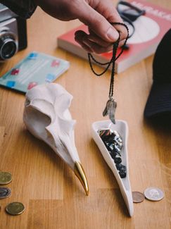 Шкатулка для украшений Suck UK Bird Skull, выполненная в виде птичьего черепа, надежно скроет ваши драгоценности или мелочи. Насадка и потертости на крышке придают вещи оригинальность и реалистичность. Верх шкатулки полностью снимается, она будет служить украшением интерьера комнаты. Наличные, Visa/MasterCard, Яндекс.Деньги, WebMoney Возможен самовывоз. Есть доставка.