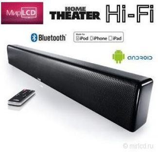 Звуковой проектор. Серия Digital Movie. Звуковой проектор SurroundBar 2.1 для домашнего кинотеатра. 3-полосная cистема Bass reflex с пассивной мембраной. Мощность системы 200 Ватт. Частотный диапозон 40-23.000 Гц. НЧ-динамик 4 x 100 мм, алюминиевый. СЧ-динамик 2 х 50 мм, алюминиевый. ВЧ-динамик 2 x 25 мм, ткань. Dolby Digital декодирование, DTS TruSurround, Дистанционное управление, Встроенный сабвуфер, Светодиодный дисплей, LipSync функция для точной синхронизации речи, Виртуальное объемное звучание и стереофоническое воспроизведение, 3 предустановки для настройки акустики в месте установки, Простая установка с одним кабелем установки, Комплексное настенное крепление, Беспроводная передача музыки с вашего смартфона или планшетного ПК в CD-качестве с помощью Bluetooth, Пульт ДУ управляемый ТВ с IR сигналом. Пульт ДУ с IR сигналом. Canton DM 9 отличное решение SurroundBar для установки в гостинной. Цвет: Черный полуглянец. None
