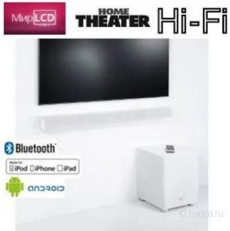 Звуковой проектор. Серия Digital Movie. Звуковой проектор SurroundBar 2.1 c беспроводным сабвуфером для домашнего кинотеатра и беспроводной технологией Bluetooth для Apple iPhone iPod iPad и других портативных устройств на базе Android. Принципы проектирования Soundbar 2 -полосная закрытая система. Выходная мощность сабвуфера 400 Вт. Частотный диапазон 30 - 23.000 Гц. НЧ-динамик сабвуфера 1 х 220 мм. СЧ-динамик Soundbar 4 х 50 мм. Твитер Soundbar 2 х 19 мм, ткань. Соединения 1 аналоговый вход (chinc), 1 Bluetooth интерфейс 4.0 (APT -X кодек), 1 цифровой вход (коаксиальный), 1 цифровой вход (оптический), 1 Sub выход. Регулировка низких и высоких частот. Dolby Digital декодирование. DTS Digital Surround декодирование. DTS TruSurround, дистанционное управление. Светодиодный дисплей. Функция LipSync для точной синхронизации речи. Воспроизведение Virtual surround и стерео звука. Беспроводная передача сигнала сабвуфера по 5,8 ГГц радиоканалу. 3 пресета для регулировки акустики по месту установки. Простота установки один кабель к телевизору и один кабель питания. Беспроводная передача музыки со смартфона или планшетного ПК в CD-качестве через Bluetooth. Управляемый ТВ с пульта дистанционного управления. Тонкая звуковая панель с твердым HDF корпусом. Звковая панель со встроенным настенным креплением. Цвет: Белый полуглянец. Производитель: Германия. None
