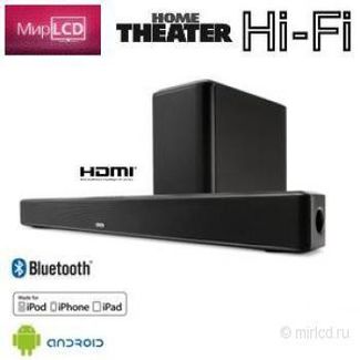 Звуковой проектор. Звуковой проектор Soundbar 2.1 c беспроводным сабвуфером для домашнего кинотеатра и беспроводной технологией Bluetooth для Apple iPhone iPod iPad и других портативных устройств на базе Android. HDMI вход и выход. Идеальное для телевизоров с диагональю 42 дюйма. 2-полосная акустическая система с твитерами 2 x 1.27 см и овальными СЧ-динамиками 2 x (5 х 12 cм). Беспроводной сабвуфер с 2 x 130 мм НЧ-динамиками для интенсивного баса. ИК-ретранслятор для передачи команд от пульта ДУ телевизора. Плоскопанельные телевизоры становятся все тоньше, и обеспечить сопоставимое качество звука от встроенных динамиков все сложнее. Denon Звуковая панель DHT- S514 звуковая панель для большой картины звука с простотой подключения по HDMI и беспроводной технологией Bluetooth для мобильных устройств с реалистичными возможностями объемного звучания и беспроводным сабвуфером для полностью обволакивающего звука ТВ и музыки. DHT- S514 является тонкой, звуковой системой Hi-Fi качества, которая обеспечивает мощный, динамичный звук. Подключение включает в себя цифровые, аналоговые и беспроводные входы с aptX Bluetooth потоковым аудио CD-качества с Bluetooth оборудованных портативных устройств, смартфонов и планшетов. Технология Virtual Surround имитирует полный, многоканальный домашний кинотеатр c объемный звук с декодированием Dolby Digital и DTS. Можно выбрать ночной режим прослушиваниядля для просмотра в удовольствие не мешая домочадцам. Цвет: Черный. None