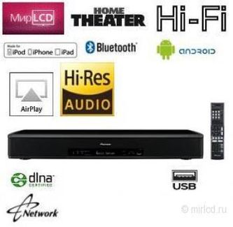 Звуковой проектор. Сетевая телевизионная звуковая платформа громкоговорителей с FM-радио, Bluetooth, Wi-Fi, DNLA, Spotify, AirPlay и USB, поддержкой аудио высокого разрешения, декодером Dolby Digital/DTS, системой бесшумного воздушного порта и двойного сабвуфера. етевая звуковая платформа громкоговорителей SBX-B70 – это гениальное многофункциональное устройство на все случаи жизни, в котором множество современных медийных возможностей сочетается с простотой настройки и управления. В качестве телевизионной системы громкоговорителей, она выдает достойное звучание, несмотря на свои компактные размеры. На ее прочном нерезонирующем корпусе из МДФ-плиты отлично разместится телевизор весом до 40 кг. Встроенные системы двойного сабвуфера и бесшумного воздушного порта обеспечивают чистоту и силу звучания баса, технология Phase Control дает высокое качество звучания. Система 2.2 с интегрированным усилителем класса D обладает выходной мощностью 130 ватт. Платформа может посредством Wi-Fi и Ethernet получить доступ к локальной сети и местным источникам музыки, и к потоковому онлайн-сервису Spotify Connect. Посредством Bluetooth и Airplay пересылайте произведения со своего мобильного устройства прямо на звуковую платформу или используйте USB-вход. Системой можно удобно управлять со смартфона или планшета с помощью бесплатного приложения (Pioneer ControlApp) для iOS и Android. Цвет: Черный. None