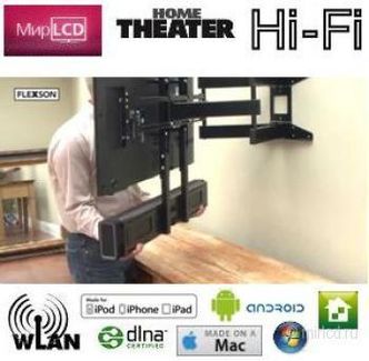 Звуковой проектор. Cистема домашнего кинотеатра SoundBar 3.0, беспроводная акустическая платформа c настенным креплением для плоскопанельных телевизоров 32" - 65", c беспроводым (Wi-Fi) подключеним к домашней сети и управлением планшетами и смартфонами Android, Apple iPhone, iPad. Максимальный вес телевизора до 40 кг вместе с Sonos PLAYBAR. Вертикальная и горизонтальная регулировка. Sonos PLAYBAR как часть телевизора и вращается вместе с ним. Cовместимость с VESA от 100 x 100 до 600 x 400. Flexson Cantilever TV Mount for Sonos PLAYBAR ультра-тонкий кронштейн толщиной 12 мм, позволяет монтировать Ваш плоскопанельный телевизор и беспроводную акустическую систему Sonos PLAYBAR как бесшовный блок. Звуковая панель для любителей музыки. Дополняет плоскопанельные телевизионные экраны богатым HiFi звуком. Беспроводная передача всей музыки на планете. Простая в установке, управлении и расширении до системы домашнего кинотеатра 3.0, 3.1 и 5.1. Требуется только два провода: один шнур питания, один оптический шнур (в комплекте). Синхронизация с другими акустическими системами Sonos без проводов. Понимает и работает с большинством ИК пультов и может управляться с помошью бесплатного приложения для вашего Android, Apple iPhone, iPad устройства, также MAC и ПК. Воспроизведение всех источников, подключенных к телевизору высокой четкости (спутниковые тюнеры, 3D Blu-Ray-плееры и игровые консоли). PLAYBAR делает 24 миллиона вычислений в секунду, позволяя каждому динамику подстраиваться для достижения полного баланса в звучании. Добавьте к PLAYBAR сабвуфер SAB и получите домашний кинотеатр 3.1. Дополните свой домашний кинотеатр парой тыловых акустических систем PLAY:1 или PLAY:3 и сабвуфером SUB и получите полноценный кинотеатр 5.1. Цвет: Черный. Производитель: США-Великобритания. None