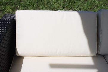 Материалы: Порошковое покрытие, стальной трубы рамы, Искусственный ротанг, Цвет подушек светло-бежевый, толщина подушки сиденья 8 см. Подукшки из влагостойкой непрожигаемой ткани.