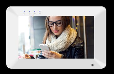 Возможен удаленный просмотр записей на SD карте. Экран 7 дюймов, емкостной сенсорный, разрешение 1024x600, hands free. Встроенный Wi-Fi модуль (может работать в беспроводных или проводных сетях Ethernet) с возможностью связи вызывных панелей с приложением "vhOme 2.2" для iOS и Android. Выход HOOK для работы с блоками сопряжения подъездных домофонов.