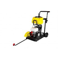 Швонарезчик - профессиональное оборудование, которое используется для выполнения строительных и ремонтно-дорожных работ. Предназначен для резки горизонтальных плоскостей. VFS-350 применяется при работах, требующих высокой точности - при резке перекрытия, тротуара, аллеи, пандуса и других поверхностей.Отлично подходит для резки швов глубиной до 110 мм. С помощью швонарезчика можно разрезать как бетон, так и асфальт. Работает от мощного бензинового двигателя (GX160). Рекомендован для использования в открытых рабочих зонах. Отличается автономностью и простотой использования. При работе резчик безопасен и надёжен. Может резать без использования охлаждения. Оптимальное давление на диск обеспечивается правильно распределённым весом внутренней конструкции. Щиток диска открывается на петлях, что обеспечивает более лёгкую смену диска. Шины швонарезчика выполнены из мягкого каучука, что обеспечивает плавность хода. Легко перевозится любым транспортным средством. В комплектацию входит дополнительный ремень. Отличительные особенности: Бак расположен в центре, благодаря этому центр тяжести посередине, легче управляется и передвигается вперёд;Благодаря правильно расположенному центру тяжести рез происходит по оптимальной траектории и линейности, что в свою очередь увеличивает срок службы диска;Короткий рычаг у поручня позволяет легче управлять линейностью и маневренностью хода;Прорезиненная накладка на поручне защищает от нежелательных вибраций;Наличие бака для воды даёт возможность использовать диски как для мокрой, так и для сухой резки (не требуется постоянный источник проточной воды);Чётко фиксируемая глубина нарезаемого шва, прямой и точный рез;Наличие стояночного тормоза увеличивает безопасность эксплуатации;Простая и быстрая регулировка глубины реза за счёт вращения штурвала