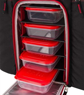 Фитнес-сумка-холодильник Innovator 500 черная 6 Pack Fitness Запатентованная регулируемая система внутренних полок для 5 контейнеров Lock Lid. 5 контейнеров для еды с 2 охлаждающими гелевыми пакетами, позволяют сохранить блюда свежими и прохладными не менее 8 часов. Внутренние отсеки полностью изолированы друг от друга. Снаружи 2 боковых кармана для бутылок, шейкеров. Сумка оснащена эргономичной лямкой. Материалы: снаружи сверхпрочный полиэстер 600D, внутри износоустойчивая ткань... None Возможен самовывоз.