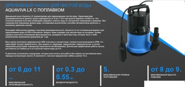 - Насос дренажный Aquaviva LX Q9003 (220В, пф, 11м3 ч, 0.55кВт) для чистой воды, с поплавком в каталоге Дренажные насосы в России;