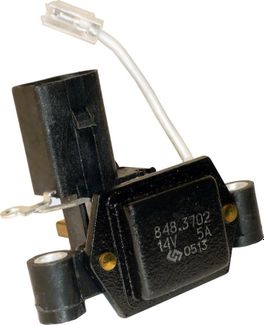 848.3702 Регулятор напряжения в сборе со щеточным узлом предназначен для поддержания нормального значения напряжения при изменяющихся режимах работы генератора, электрических нагрузках и температуре, а так же обеспечивают защиту элементов генератора при аварийных режимах и перегрузках None