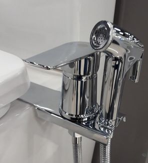 Подходит для любых типов унитазов и может закрепляться справа или слева от сантехнического прибора. Применяется в малогабаритных санузлах и обеспечивает рациональное использование площади. Позволяет проводить гигиенические процедуры, не вставая с унитаза. Включение и отключение воды, а также регулировка температуры и напора выполняются с помощью рычага.
