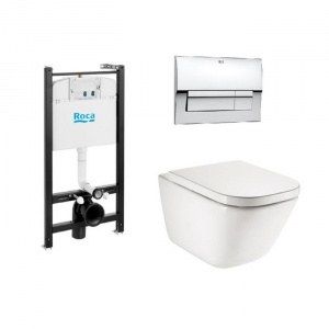 Инсталляция Roca,подвесной безободковый унитаз GAP,сиденье,клавиша смыва