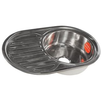 Установка: врезная Форма мойки: овальная с крылом Общий размер: 770500180 мм Размер чаши: d400 мм Толщина: 0.8 мм Поверхность: полированная Материал: сталь 201 Отверстие под смеситель – нет Перелив: есть Выпуск: 3 1/2