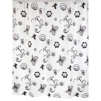 - Шторка для ванной "Бабочки-цветочки" белая (арт.1153) 180х200 без колец по выгодной цене 560 р. руб.;