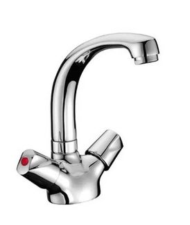 Назначение для умывальника Тип смесителя двухвентильный Форма излива дугообразный