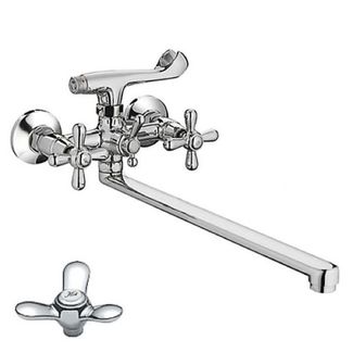 Смеситель для ванны Cron CN2112, классический вариант, который обладает двумя вентилями для горячей и холодной воды. Аэратор в смесителе помогает обеспечить равномерную подачу воды , а также ее смягчение. Специальная сетка отфильтровывает примеси. Настенный прибор – классический вариант, который в настоящее время наиболее часто ставится в ванной. Кроме излива такие модели оснащаются отдельным выходом на душевой шланг и лейку. Классика – это модели, уже давно проверенные временем. К данному типу смесителей относятся функциональные, красивые, надежные изделия, которые обладают традиционным дизайном. Прибор производится из силумина, это не очень надежный материал, в отличии от других. В основном такую модель покупают на временное пользование. Служит около 2-5 лет. Один из наиболее традиционных вариантов оформления смесителя. Круглая форма позволяет выглядеть максимально стильно и привлекательно для глаз человека. Излив данного устройства присутствует под рычагом управления водой. Излив прибора имеет возможность вращения, что увеличивает практичность. Данный тип смесителей оснащается качественной керамической кран-буксой. Не оглядываясь на большой возраст технологии, она как и прежде достаточно популярна вследствие своей стабильности в использовании. У подобных приборов переключение подачи воды на излив или душевой шланг совершается путем поворота специального рычага, который выносится на переднюю панель прибора. В этом случае предполагается, что установка смесителя осуществляется на два отверстия, которые имеются в раковине или умывальнике. На данный момент времени возможно увидеть немало таких моделей. В комплекте идет, инструкция по установке, гарантийный талон, душевая лейка , держатель лейки , комплект эксцентриков , комплект отражателей. Технические характеристики: