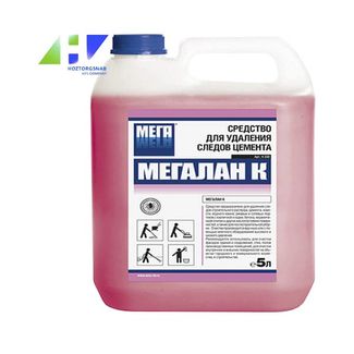 - Средство кислотное от цементных пятен Мегалан К 5л по выгодной цене 653 р. руб.;