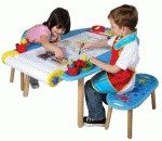 Идеальный стол для юных художников. В комплект входит две детские скамейки. К столу прикреплен рулон бумаги размеров 45 см в ширину и длинной более 2-х метров, бумагодержатель и бумагорезчик, None