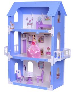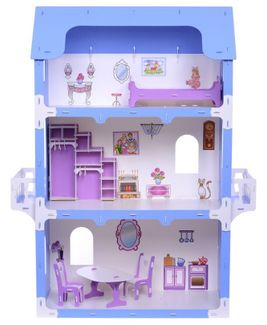 Размер дома 82,5 x 35,5 x 105 см. Для кукол до 30 см. Три этажа, два балкона с резными перилами, красивые формы окон и дверей, комплект мебели из пяти предметов и набор наклеек с изображениями элементов интерьера. Целая кукольная семья сможет расположиться в просторных комнатах! В набор мебели входят: овальный стол, два стула, кровать и плательный шкаф с плечиками для одежды. Шкаф словно оживает, когда представляешь, как на этих плечиках уже висят любимые наряды для куклы. Коттедж "Екатерина" — незабываемый подарок, с которым могут комфортно играть сразу несколько детей! О материале Домики KRASATOYS производятся в России из современного материала полифом. Это вспененный полипропилен (пористый пластик). Он невероятно воздушный, почти невесомый, при этом плотный и устойчивый к влаге. Легкость (можно перемещать, подвешивать на стену с целью экономии пространства). Гибкость (удобно собирать). Яркие цвета (не нужно раскрашивать, в отличие от фанерных). Дом-конструктор Благодаря замкам-защелкам домик собирается без дополнительной фурнитуры и инструментов. Как конструктор! Набор упакован в яркую удобную коробку с цветной печатью. Коробка имеет пластиковую ручку для транспортировки. В комплекте Конструкция домика Гардеробная Кровать Стол 2 стула Набор наклеек Схема сборки Обратите внимание, кукла в комплект не входит. None