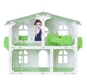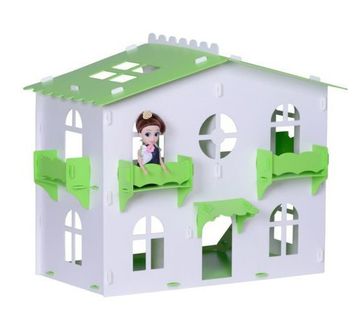 Дом размером 46,5 х 27,5 х 37 см. Для кукол до 10-12 см. Загородный дом "София" имеет два этажа и относится к категории средних домиков. Он состоит из четырех комнат — по две на каждом этаже. В комнатах есть большие светлые окна и балконы! Светло и уютно. Окна есть даже на крыше! Девочки не пройдут мимо такого красивого домика! А как интересна и увлекательна будет их игра с куклами, смотрящими вдаль в ожидании принца, который вот-вот появится под балконом! О материале Домики KRASATOYS производятся в России из современного материала полифом. Это вспененный полипропилен (пористый пластик). Он невероятно воздушный, почти невесомый, при этом плотный и устойчивый к влаге. Легкость (можно перемещать, подвешивать на стену с целью экономии пространства). Гибкость (удобно собирать). Яркие цвета (не нужно раскрашивать, в отличие от фанерных). Дом-конструктор Благодаря замкам-защелкам домик собирается без дополнительной фурнитуры и инструментов. Как конструктор! Набор упакован в яркую удобную коробку с цветной печатью. Коробка имеет пластиковую ручку для транспортировки. В комплекте Конструкция домика Лестница Кровать Схема сборки Обратите внимание, кукла в комплект не входит. None