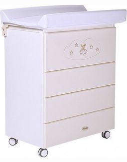 Комод пеленальный Feretti Majesty белого цвета благодаря качеством используемых материалов, эргономичностью и стильным дизайном относится к мебели высшего класса. На фасаде изображение зайчика на облаке среди звезд, которое подойдет для любой детской комнаты. Откинув стол, вы получите доступ к анатомической ванночке со сливом. Там же предусмотрено место для хранения купальных принадлежностей. Наличные, Visa/MasterCard, Яндекс.Деньги, WebMoney Возможен самовывоз. Есть доставка.