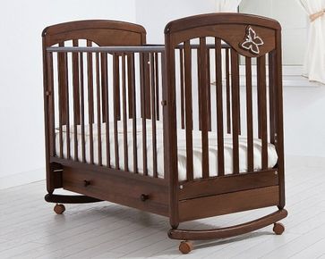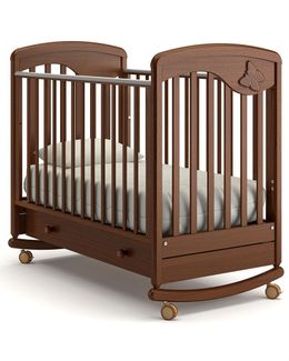 Кроватка-качалка Джулия от компании Гандылян с аппликацией-бабочкой на одном из бортиков. Сделана из натурального бука. Оборудована полозьями для укачивания малыша. Наличные, Visa/MasterCard, Яндекс.Деньги, WebMoney Возможен самовывоз. Есть доставка.