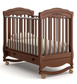 Кроватка-качалка Шарлотта Орех Гандылян очень надежная и красивая. Она сделана из натуральной древесины. Страна-производитель - Россия Наличные, Visa/MasterCard, Яндекс.Деньги, WebMoney Возможен самовывоз. Есть доставка.