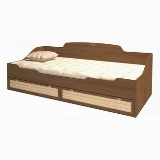 Удобная кровать для детской или подростковой комнаты - отличный вариант меблировки уютной и комфортной спальной зоны.Модель имеет высокие спинку и боковины, а так же небольшие выступы в передней части, служащие в роли ограничителей.В основании кровати располагаются два выдвижных ящика для постельных принадлежностей.Основание кровати - настил из листа ДВП с тремя ребрами жесткости под ним.Корпус кровати выполняется из ЛДСП, фасады ящиков - рамочный профиль и вставки из МДФ.Декоративные детали - металл под бронзу. Работаем круглосуточно!Возврат 21 день. Страна производства: Россия Есть доставка.