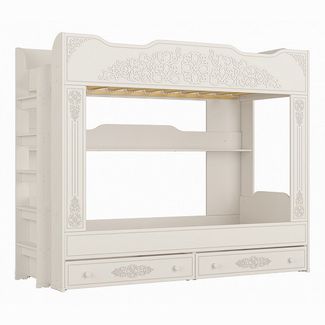 Кровать может быть собрана в двух вариантах расположения лестницы: справа или слева. При сборке необходимо обратить внимание, что высокая панель изголовья второго яруса собирается на противоположную лестнице сторону. Если лестница слева - высокое изголовье – справа.И верхняя и нижняя кровать оборудованы ламелями, которые идут в комплекте. Дополнительное дно (ДСП/фанера) в конструкции верхней кровати не предусмотрено.Высота изголовья верхней кровати 398 мм, защитных бортов 348 мм. Рекомендуемая высота матраца для верхней кровати от 160 мм.Высота защитных бортов нижней кровати 186 мм.Высота лестницы 1542 мм, ширина ступеней 98 мм, ширина лестницы 428 мм. Ступени имеют дополнительное ребро жесткости.Кровать снабжена двумя выкатными двухсекционными ящиками. Ширина каждого ящика 952, глубина 910 мм, высота 150 мм. Размер каждой секции в ящике 468x910x150 мм. Дно ящика - ДВП 3 мм.Опоры кровати имеют подпятники, предотвращающие повреждение напольного покрытия. Работаем круглосуточно!Возврат 21 день. Страна производства: Россия Есть доставка.