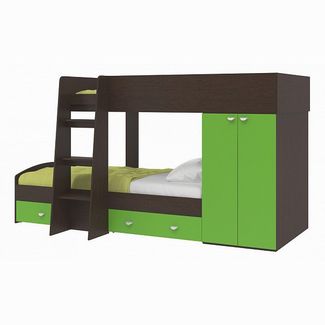 Высокий защитный бортик на втором ярусе и удобная лестница не имеющая аналогов сделают использование этой модели комфортным и безопасным.Модель универсальная, при сборке лестница и шкаф устанавливаются с левой и правой стороны по Вашему желанию. Работаем круглосуточно!Возврат 21 день. Страна производства: Россия Есть доставка.