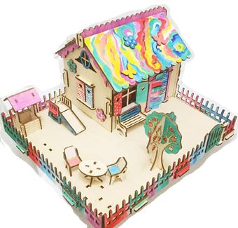 Сборный домик из дерева "Фантазия" — это сочетание готовой игрушки и набора для творчества. В комплекте домик, игровая площадка, мебель, аксессуары для творчества и даже занавески. Домик можно раскрасить! В набор включены краски и кисточки. Габариты собранной игрушки: 34×18×30 см. Дом рассчитан на кукол до 7 см. Минимальная сумма заказа 500 руб.