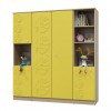 Красочная, современная, практичная корпусная мебель для детской комнаты Маугли №2, отлично впишется в интерьер детской и поможет создать удобную и очень функциональную систему хранения. Интересные рельефные орнаменты в виде листьев тропического растения на цветных фасадах мебели привнесут в интерьер радостные и позитивные эмоции.
