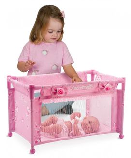 Кто из малышей не хотел поиграть детстве в "дочки-матери"? Манеж-кроватка для куклы DeCuevas Toys будет отличным подспорьем для этой сюжетно-ролевой игры. Он очень похож на настоящий: можно посадить в манеж игрушки или уложить их спать, а потом наблюдать за ними — по бокам вставлена сетка. А при желании, его можно сложить и убрать в чехол (идет в комплекте) для хранения и переноски. Цвет — нежно-розовый. None