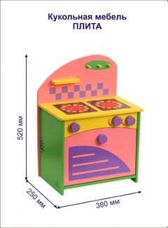 Яркая, удобная в сборке газовая плита будет незаменимым атрибутом кухни, пускай и кукольной. На ней ребенок с легкостью и проворством заправского шефа сможет накормить все свои любимые игрушки. Какой домик может обойтись без кухни, на которой есть плита? Конечно же, никакой. Ведь где-то обитателя кукольного домика должны готовить. Наша плита выглядит стильно и сочетается со всем ансамблем игрушечной мебели. А, главное, она проста в сборке, что важно родителям, и интересна в использовании, что важно детям. Самое интересное, что не только дети будут рады такому приобретению. Родителям, безусловно, тоже будет весьма интересно играть вместе с ребенком такими игрушками. Плита выглядит действительно интересно и максимально похоже на настоящую. Сколько чудесных игр можно придумать, чтобы было веселее и интереснее проводить время с ребенком. Игрушка изготовлена из экологически чистых материалов: бук, береза и липа. Окрашена исключительно акриловыми красками. Для ребенка она не представляет совершенно никакого вреда. Поставляется в разобранном виде, перед игрой необходимо собрать и склеить. None