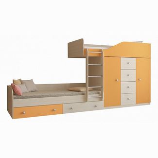 Кровать двухъярусная Астра-6 отлично подойдет как для малышей, так и для подростков. Конструкция изделия позволяет освободить больше места в помещении для активных игр. Все края имеют безопасные скругления.В составе модуля есть две удобные кровати: одна внизу, вторая на верхнем ярусе. Под нижним спальным местом располагается два выдвижных ящика для постельных принадлежностей. Под верхней кроватью продумана система хранения вещей и одежды, состоящая из четырех выдвижных ящиков по центру и двух распашных шкафов: в одном есть полки, во втором - штанга для вешалок.Основание кроватей - настил из ЛДСП.Модуль универсальный, поэтому его можно собрать как на правую, так и на левую сторону. Работаем круглосуточно!Возврат 21 день. Страна производства: Россия Есть доставка.