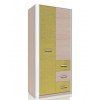 Современный комбинированный шкаф, выполнен в ярких насыщенных цветах, разместит все необходимые вещи. За распашной дверкой шкаф оснащен антресольной полкой, штангой для вешалок. Справа дверка без ручки с механизмом K-PUSH - при нажатии дверь открывается, за ней расположены три отсека с двумя полками, ниже три вместительных выдвижных ящика. Материал изделия: Каркас: ЛДСП, Фасад: ЛДСП, округлый белый глянцевый профиль и ручки с белой эмалью. Шкаф оснащён механизмом "Quadro Stop Control" надежно закрывается ящики и предотвращает их случайное открытие.