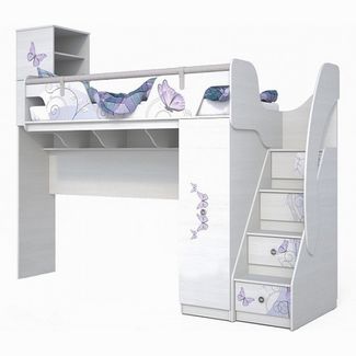 Бренд - Сканд-Мебель (Россия), Серия - Леди, Ширина, мм - 2825, Высота, мм - 2248, Выступ, мм - 852, Масса нетто, кг - 289, Необходимые компоненты - матрас 1900x800, Компоненты, входящие в комплект - полка;ступени для кровати:3 ящика;тумба:1 дверца, 1 полка;шкаф платяной:1 штанга для вешалок, 3 полки, Стиль - модерн, Размеры, мм - 2825x852x2248, Материал фасада - ЛДСП Е1, Материал корпуса - ЛДСП Е1, Материал кромки - АБС, Страна производителя - Россия, Объем упаковки, куб. м - 0.45, Длина спального места, мм - 1900, Ширина спального места, мм - 800, Цвет фасада - белый с сиреневым рисунком, Цвет корпуса - белый, Цвет кромки - белый, Гарантия, месяцы - 24 Работаем круглосуточно!Возврат 21 день. Страна производства: Россия Есть доставка.