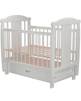 Кроватка-маятник Valle Giraffe 04 с ящиком белая - стильная модель с поперечным маятниковым механизмом, подвижной боковиной, вместительным ящиком и регулируемым по высоте ортопедическим ложем. Декор - резьба. Материал - массив березы, МДФ. Для детей от рождения до 3 лет. Наличные, Visa/MasterCard, Яндекс.Деньги, WebMoney Возможен самовывоз. Есть доставка.