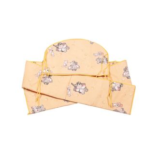 Совсем маленькие дети еще не умеют контролировать движения ручек и ножек, размахивая ими произвольно. Если его кроватка имеет твердые перила, то малыш может случайно удариться. В таких случаях в кроватку и устанавливают борт-охранник. Он располагается по всему периметру кроватки и защищает малыша от случайных ушибов. Состоит их двух частей: подголовника высотой 38 см (крепится с одной стороны кровати) и длинной части высотой 25 см (она крепится по трем сторонам кроватки). Общая длина - 360см. Материал бортика - 100% хлопок. None