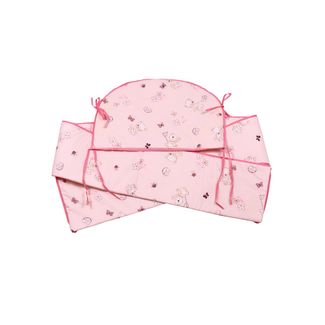 Совсем маленькие дети еще не умеют контролировать движения ручек и ножек, размахивая ими произвольно. Если его кроватка имеет твердые перила, то малыш может случайно удариться. В таких случаях в кроватку и устанавливают борт-охранник. Он располагается по всему периметру кроватки и защищает малыша от случайных ушибов. Состоит их двух частей: подголовника высотой 38 см (крепится с одной стороны кровати) и длинной части высотой 25 см (она крепится по трем сторонам кроватки). Общая длина - 360см. Материал бортика - 100% хлопок. None